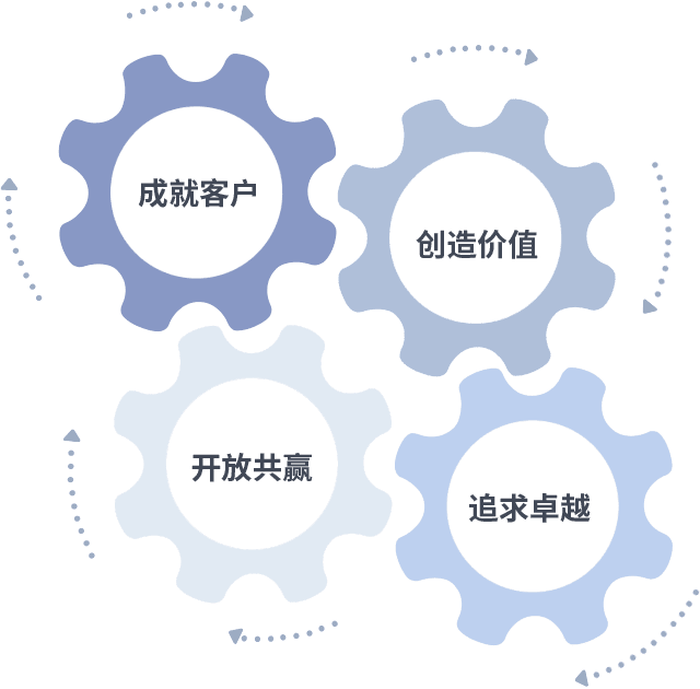 成就客户是一切决策的出发点,,,,创造价值是衡量所有工作的标准,,,追求卓越是庄和闲做事做人的态度,,,,开放共赢是庄和闲的格局也是最终的结果。。。。价值观的齿轮环环相扣,,推动着组织里的每个人不断向前。。
